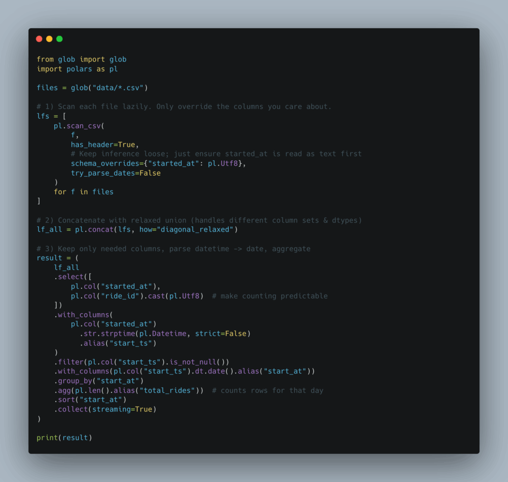 Let’s try this same thing, with the same files, in Polars and see what happens.